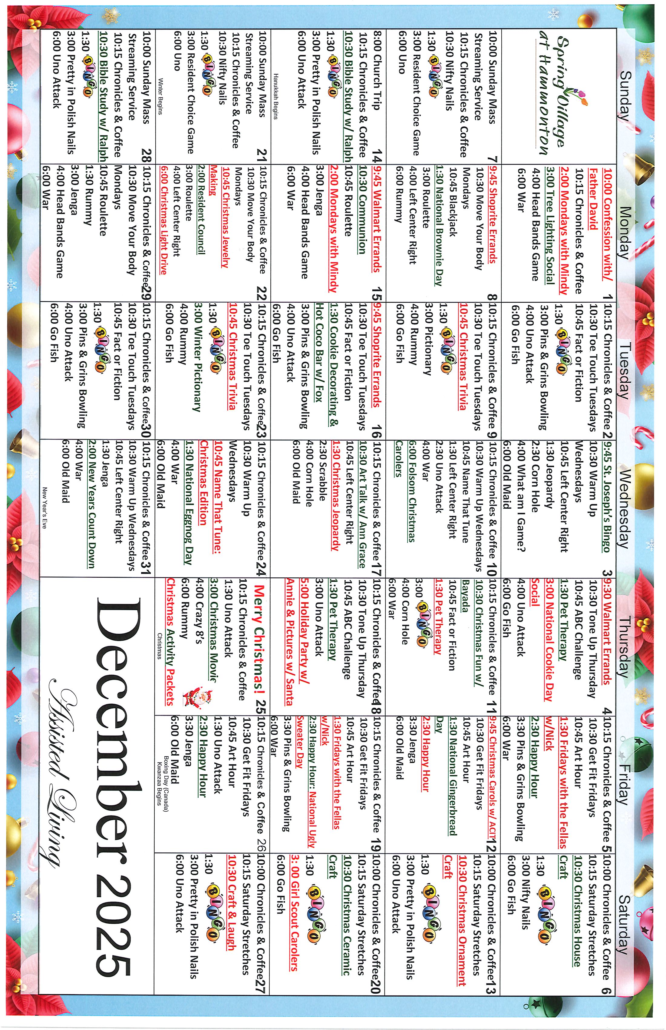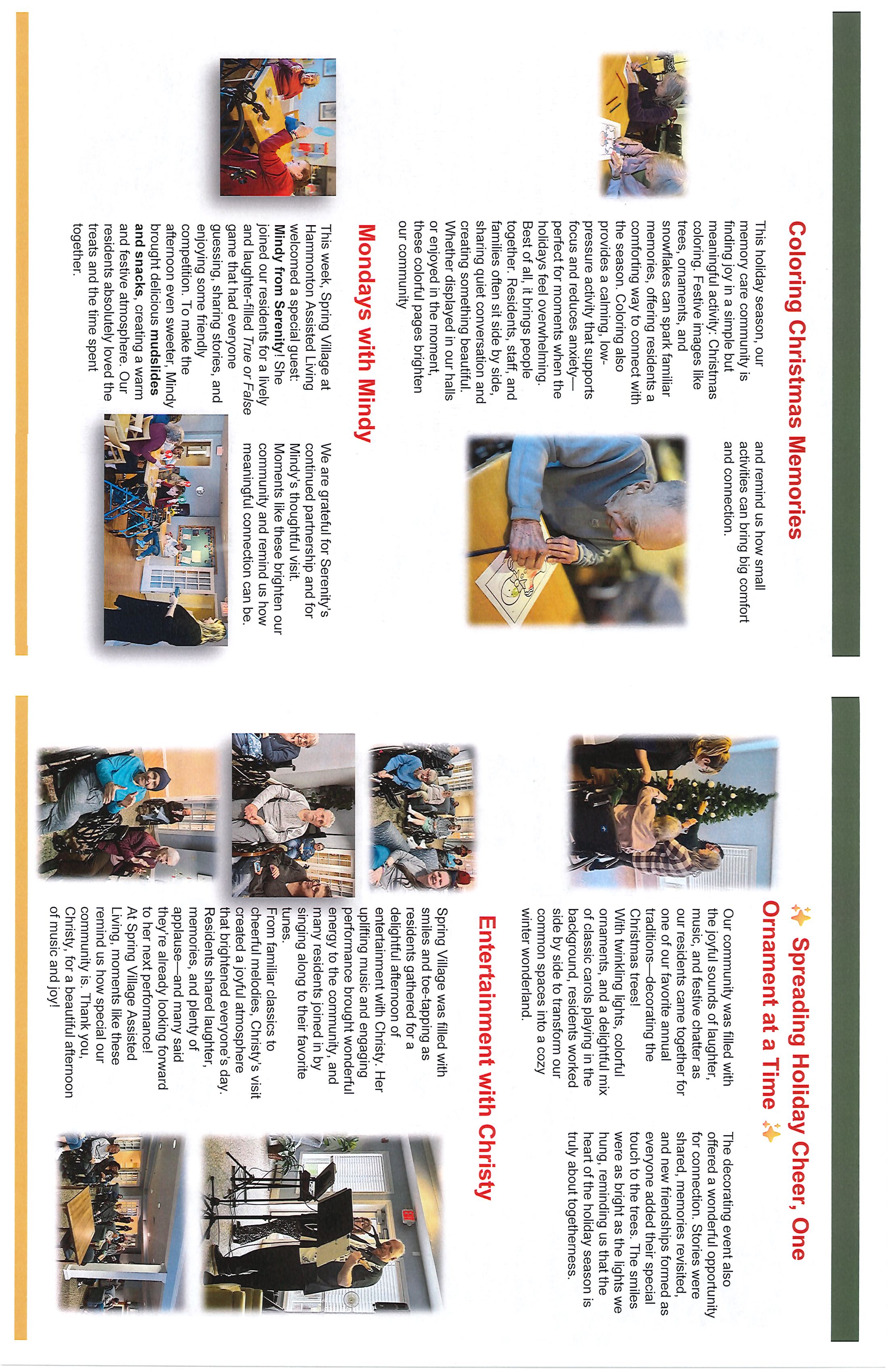 12/13 Wreaths Across America: Spring Village at Hammonton is a proud sponsor of the Wreaths Across America mission. Sponsored wreaths will be places on veterans' graves on December 13th 12pm at Holy Cross Cemetary. Contact Gina (609) 500-7707 if you are interested in making a donation.