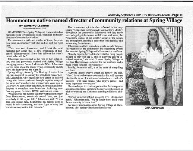 For More Information on Our Events, please contact Gina Johannsen dcr@springvillagehammonton.com